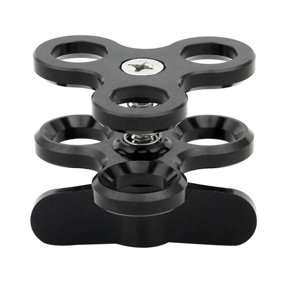 Ball Clamp 3 Holes Dive Light Arm Mount for Action Camera Torch Tripod Black, Compatible with GoPro and Other Models