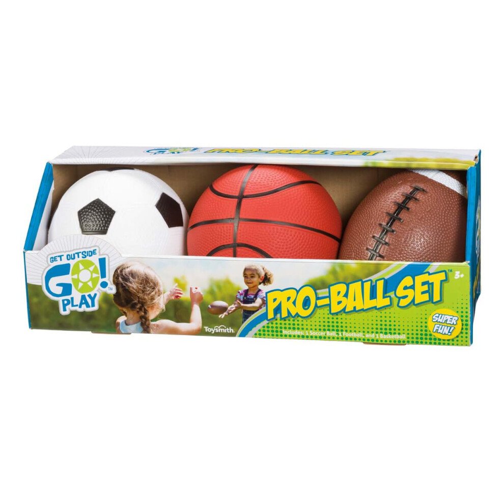 Toysmith Get Outside GO! Pro-Ball Set, Pack of 3 (5-inch soccer ball,6.5-inch football and 5-inch basketball) (2709)