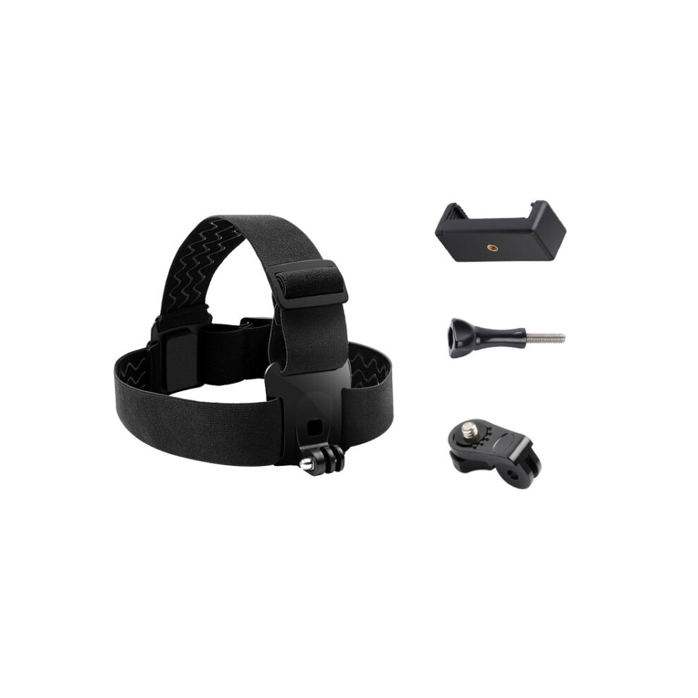 Adjustable Head Strap with Phone Clamp & Mounts for GoPro, Xiaoyi & Action Cameras (Black)