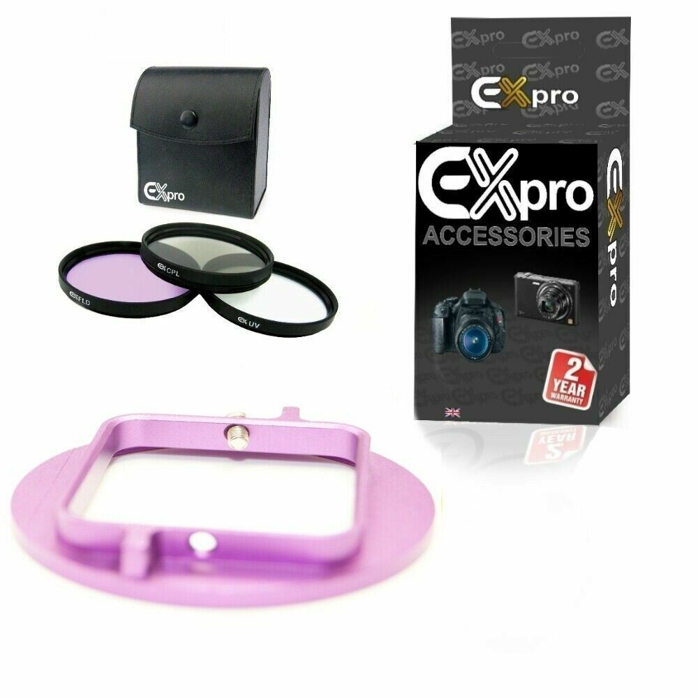 Ex-Pro Filter adapter to 52mm std lens UV CPL FLD PurpleFits GoPro Hero 3 3+ 4