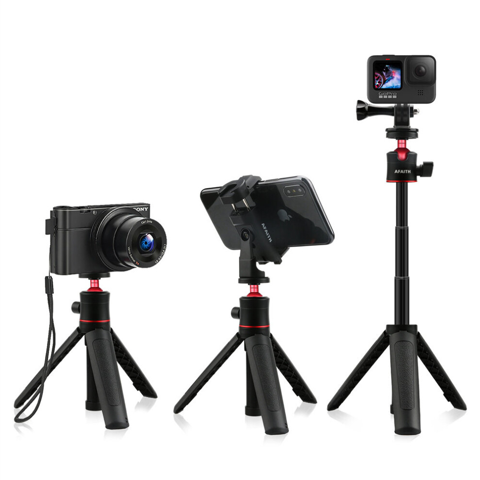 AFAITH Mini Selfie Stick Tripod phone holder Extende Table Monopod for Smart Phone holder Gopro Hero 11 10 9 8 7 6 5 Black