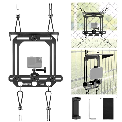 NEEWER Fence Mount with Sunshade Compatible with iPhone Mevo Camera GoPro Insta360 DJI Pocket Radar Game Changer App, Metal Mounting Kit & Phone Holder for Baseball Streaming Video Recording, PA036B