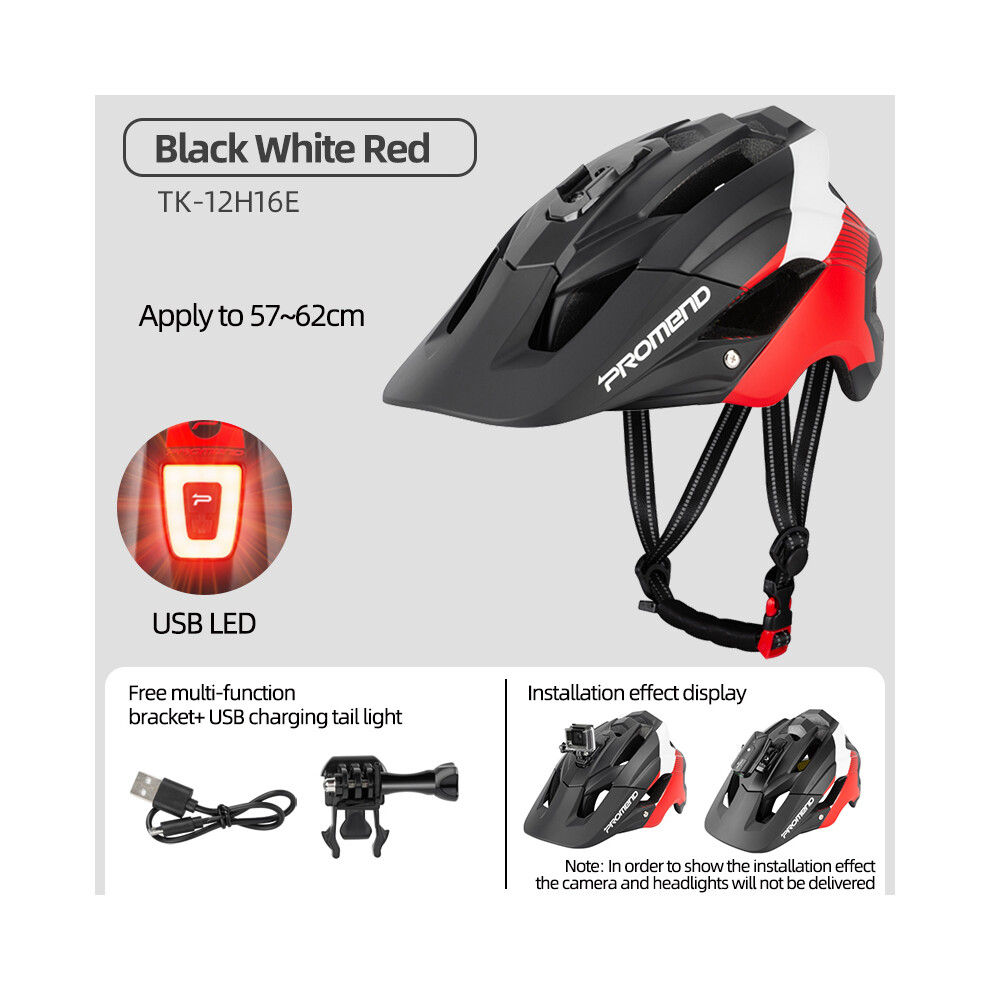 (CHINA, RED) PROMEND MTB Bike Downhill Helmet LED Lights gopro Camera Holder Road Cycling Helmet Outdoor Sport Riding Bicycle Helmet
