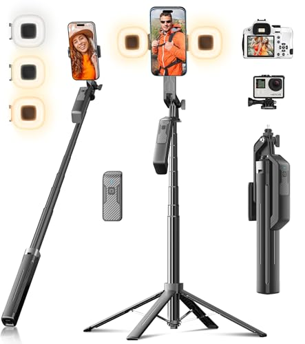 Funxee Selfie Stick Tripod - 71" Tall Cell Phone Holder with Detachable Wireless Remote and 2 LED Lights for Recording, Video and Picture, Phone Stand for iPhone, Android, Camera & GoPro