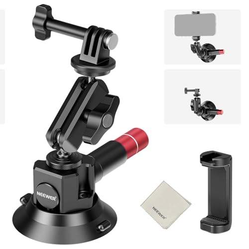 NEEWER 3" Suction Cup Mount with Phone Holder Action Camera Adapter Compatible with iPhone GoPro DJI Insta360, Ball Head Magic Arm Cleaning Cloth Quick Release Car Mount for POV Video Recording, CA104