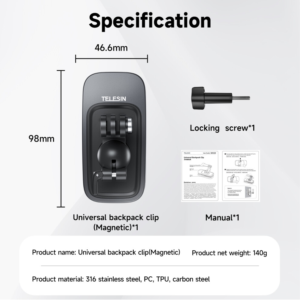 TELESIN Backpack Strap Clamp Magnetic Swivel Clip for Cam 360Rotating Adjustable Strap Mount Quick Clip Mount Compatible with GoPro11/10/9