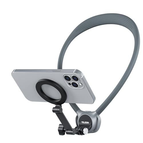 TELESIN SE 2.0 Neck Mount Set, Magnetic Phone Holder for iPhone 16 15 14 Samsung Android, Flexible POV Neck Mount for Go Pro Hero DJI Osmo Insta 360 with Multi-Angle Filming, Accessories Gray