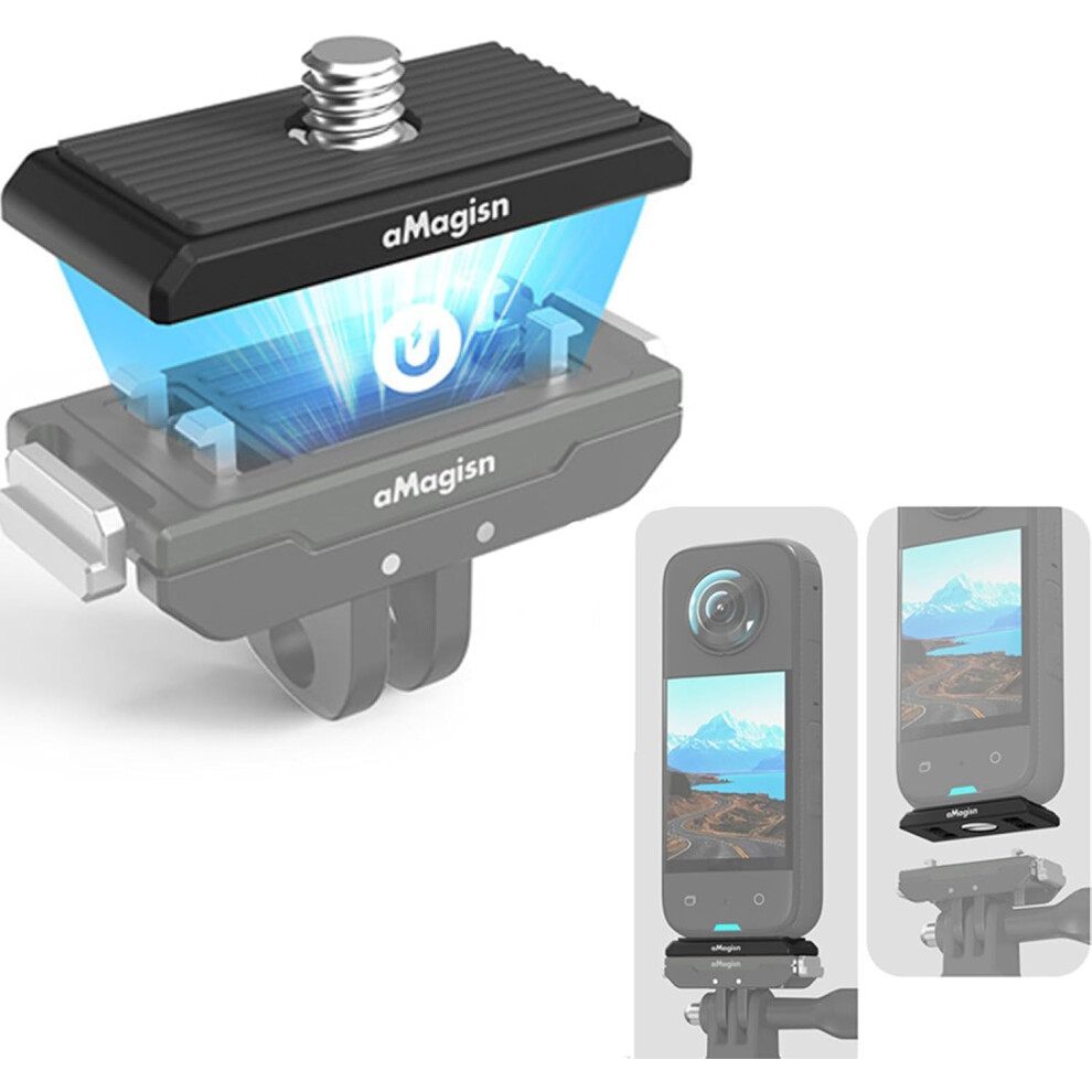 Magnetic Adapter Compatible with Insta360 X4 Sports Camera 1/4-20 Mount Metal Black for GoPro 13