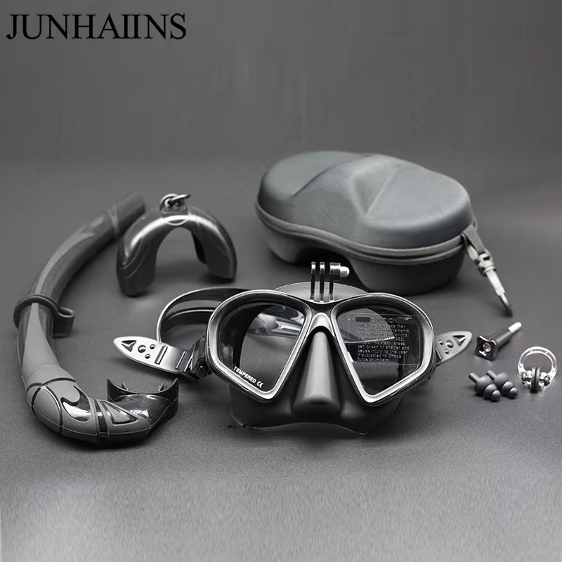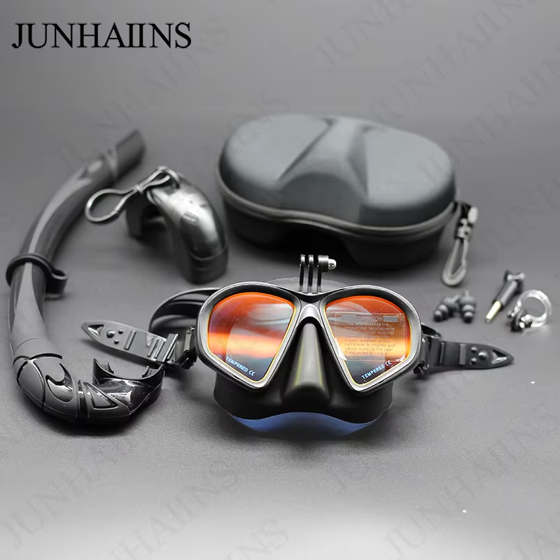 Low Volume Diving Mask Snorkel Set - Tempered Glass Freedive Mask w/ GoPro Mount