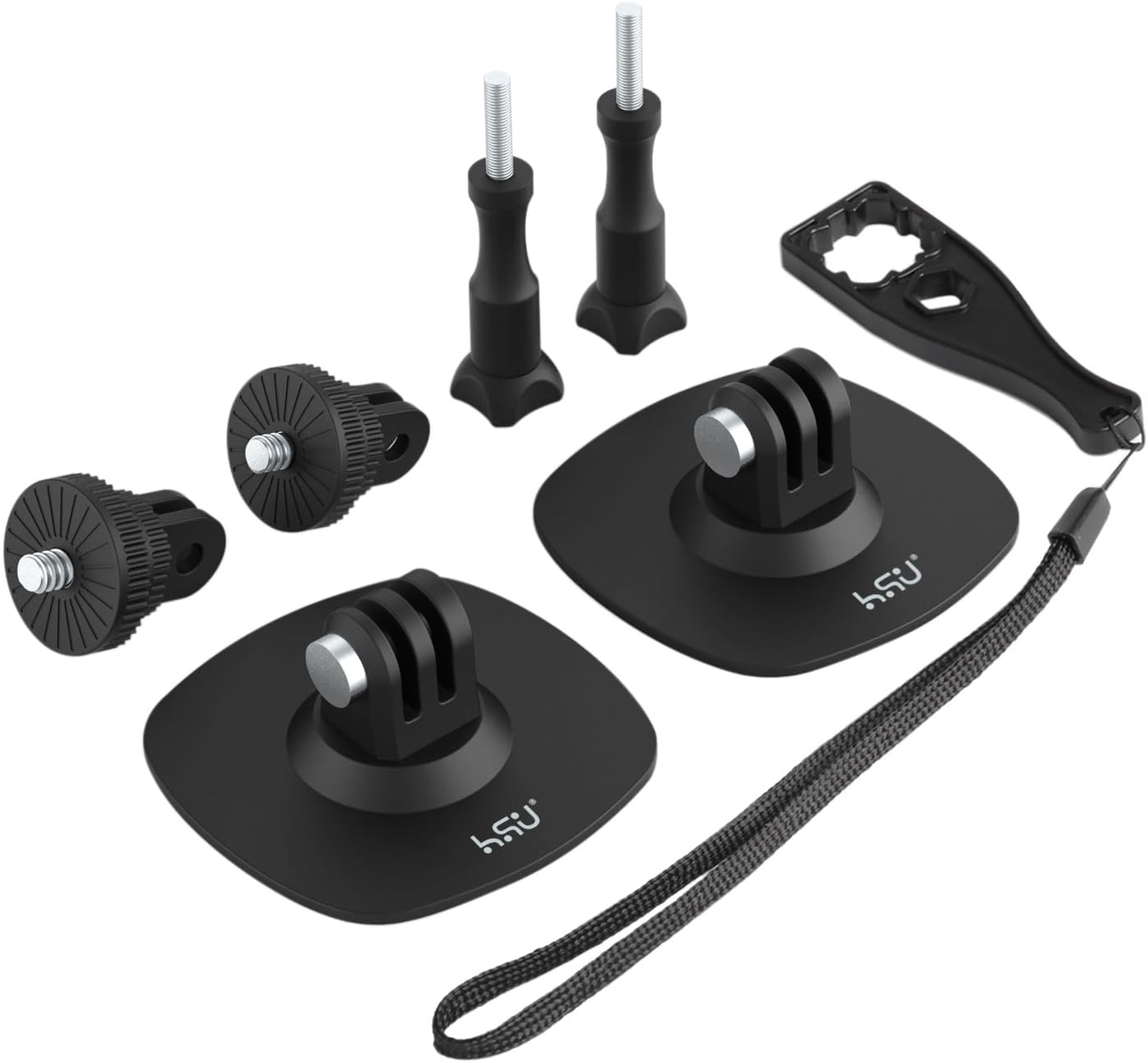 HSU Adhesive Mount for GoPro, Flexible Helmet Mounts for Insta360, Stick Accessories Kit for Action Cameras(6 in 1)
