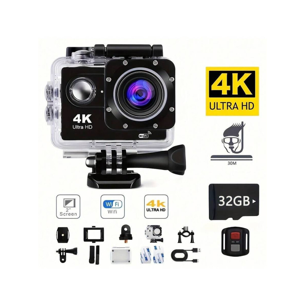 1080P 30FPS Action Camera, 12MP Waterproof Sports Cam with 2" Screen & Wide AngleâCompatible with GoPro Mounts