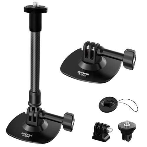 Neewer Triple Suction Cup Car Mount Kit, Carbon Fiber Camera Mount with Action Camera Adapter, NATO Rail & 24"/60cm Extension Pole Compatible with GoPro Insta360, 2.2lb/1kg Max Load, CA136