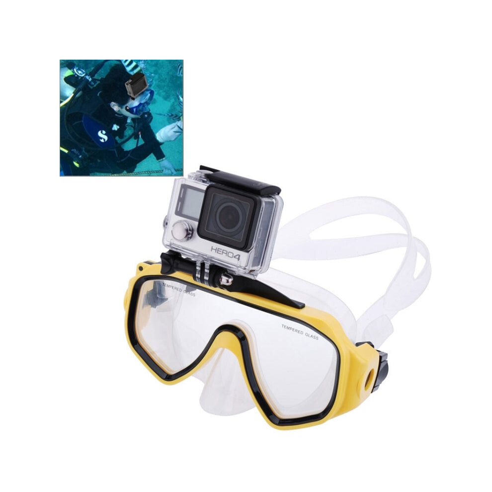 Water Sports Diving Mask with Mount for GoPro Hero12/11/10/9/8/7/6/5, Insta360 Ace/Pro, DJI Osmo Action 4 (Yellow)