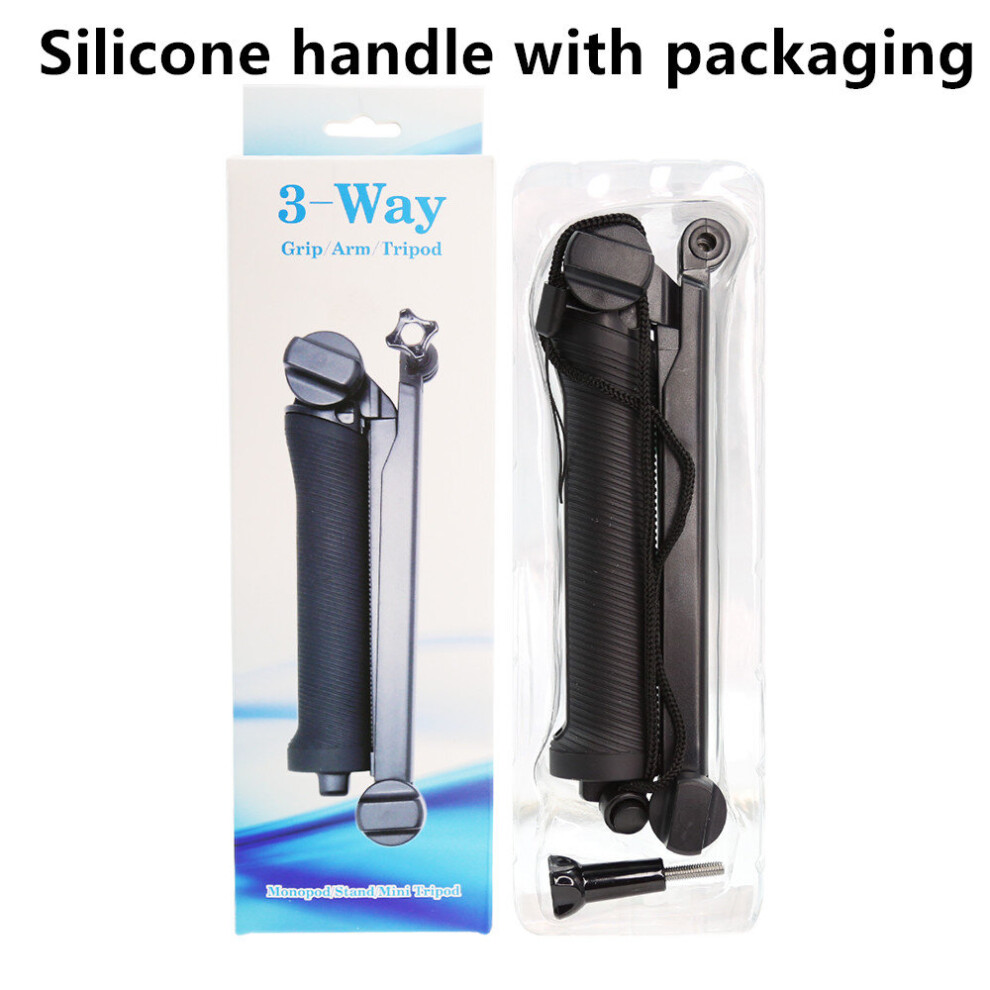 (a-Silicone type B) 3 Way Grip Waterproof Selfie Stick Monopod Tripod Stand for GoPro Hero 11 10 9 8 7 6 4K Yi EKEN SJCAM OSMO DJI Go Pro Accessory