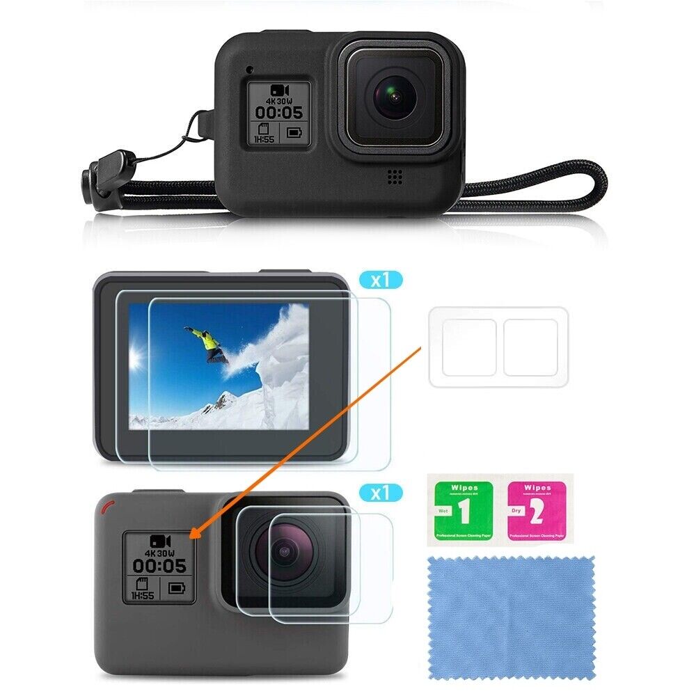 GoPro HERO 8 Silicon Soft Case Protective Cover + Tempered Glass lens Protector