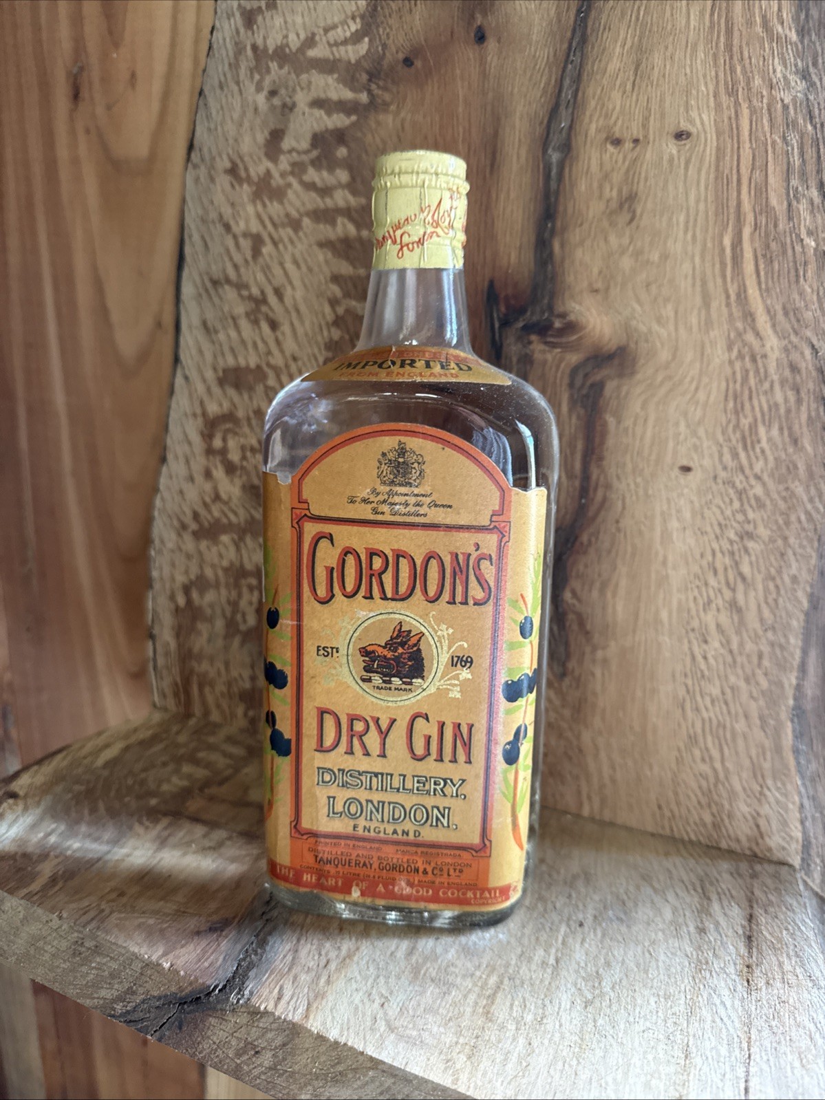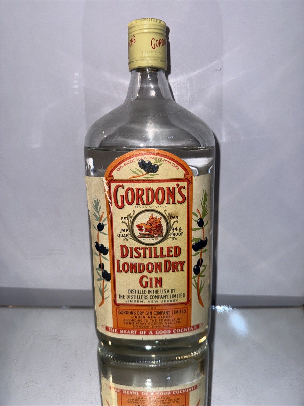 vintage Gordon’s Distilled London Dry Gin USA Quart Bottle From 1970s