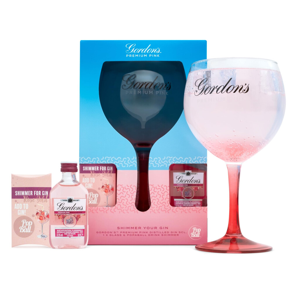 Gordons Pink Gin Gift Set Official Branded Copa Glass Popaball Rose Gold S
