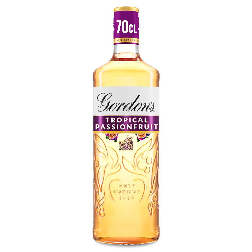 Gordon's Tropical Passionfruit Distilled Gin | 37.5% vol | 70cl | Tropical Passionfruit Flavours with Juniper Notes & Gin Botanicals | Enjoy in a Gin