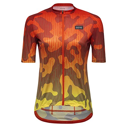 GORE WEAR Women's Breathable Cycling Jersey, Rain Camo, Fast Moisture Wicking, With Pockets, Short Sleeve Cycling Shirt, Fireball, 36