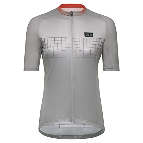 GORE WEAR Women's Breathable Cycling Jersey, Grid Fade 2.0, Fast Moisture Wicking, With Pockets, Short Sleeve Cycling Shirt, Lab Gray/Fireball, 36