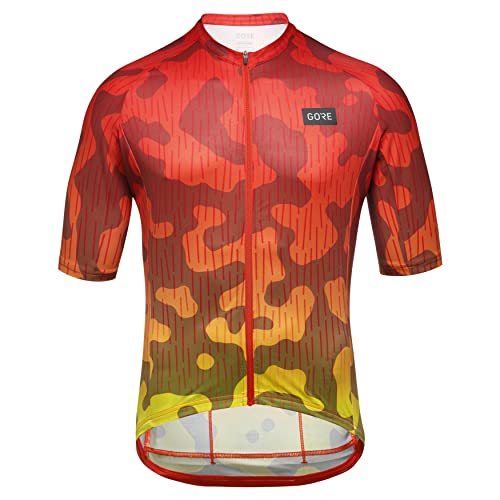 GORE WEAR Men's Breathable Cycling Jersey, Rain Camo, Fast Moisture Wicking, With Pockets, Short Sleeve Cycling Shirt, Fireball, S