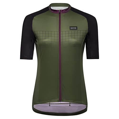 GORE WEAR Women's Breathable Cycling Jersey, Signal, Fast Moisture Wicking, Unique Design, Short Sleeve Bike Shirt, Uniform Sand/Utility Green, 42