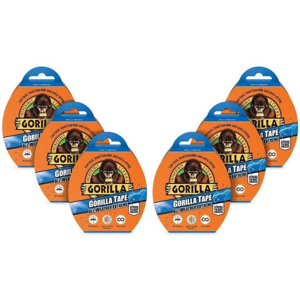 Gorilla All Weather Tape 48mm x 11m â Black Extra Strong Waterproof Tape â 6 Pack for Extreme Conditions