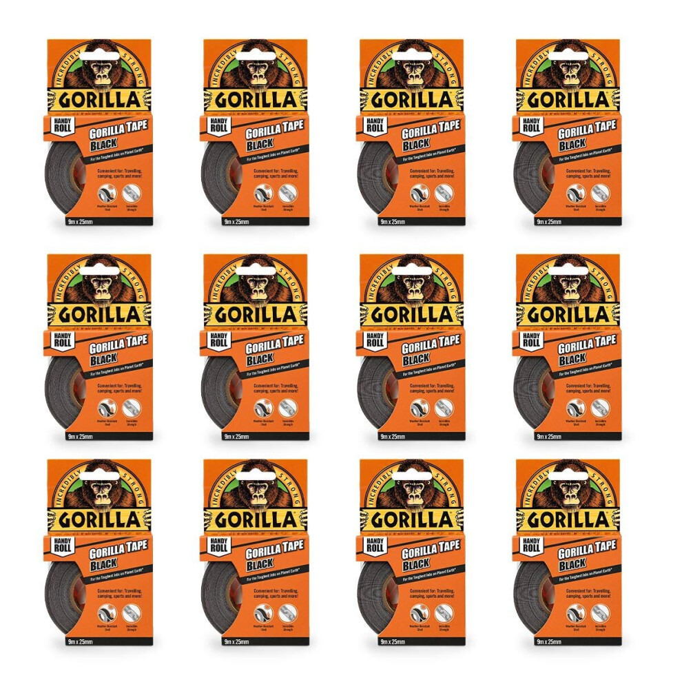 Gorilla 3044401 Tape Handy Roll Black 9m, (Pack of 12)