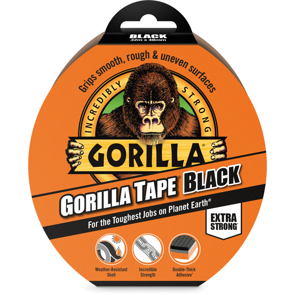 Gorilla Tape â Black, 32m Rolls, 2 Pack, Heavy Duty Waterproof Duct Tape for Repairs & Sealing