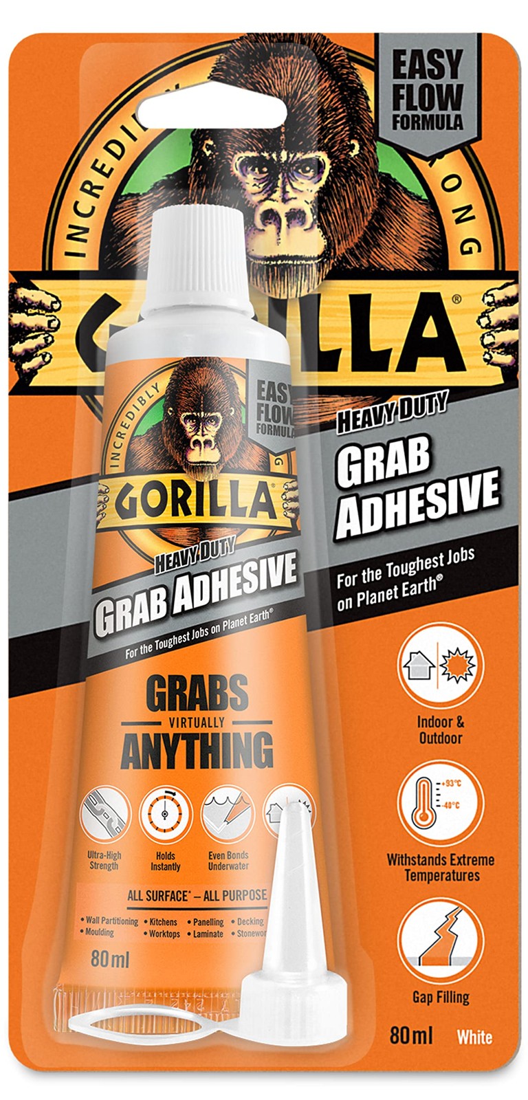 Gorilla Glue 2044301 Gorilla Heavy-Duty Grab Adhesive White 80ml GRGHDGA80WH