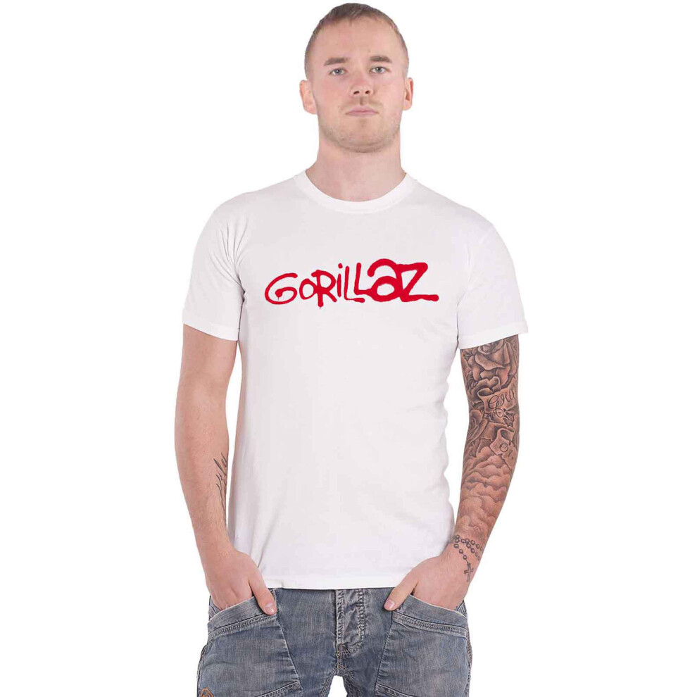 (X-Large, White) Gorillaz Logo T Shirt