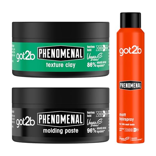 got2b PhenoMENal, Natural Finish, Strong Hold, Hair Styling Bundle. Includes: Finishing Hairspray 200 ml + Texture Hair Styling Clay 100ml + Moulding Hair Paste 100ml