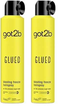 Got2b Glued Hairspray, Blasting Freeze Spray, Strong Hold Hairspray for Up to 72 Hours, Vegan, Silicone Free, 300 ml (Pack of 2)