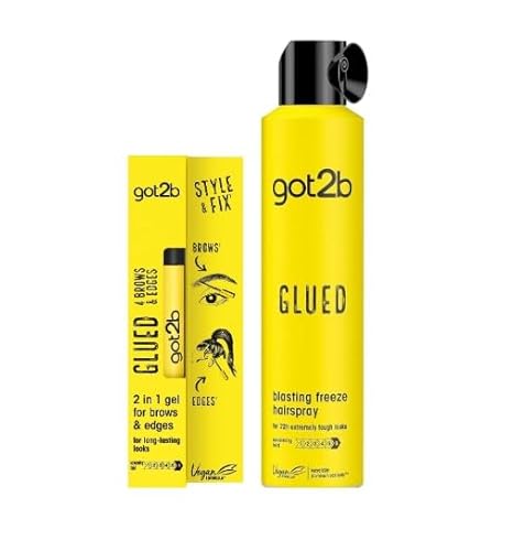 got2b Glued Blasting Freeze Hairspray 300 ml, for up to 72h Ultra-Strong Hold, For Extreme Hairstyles and got2b Glued 4 Brows & Edges Waterproof Gel 16ml, for Long-Lasting Looks, Fast Drying Gel