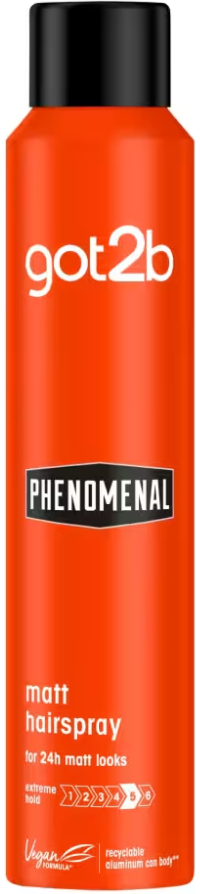 got2b Phenomenal Matt Hairspray 200 ml, Dramatic Hold, 24h Powerful Matt Looks in Seconds, Matt Style with a Powerful Fragrance, Hairspray got2b, Vegan Formula