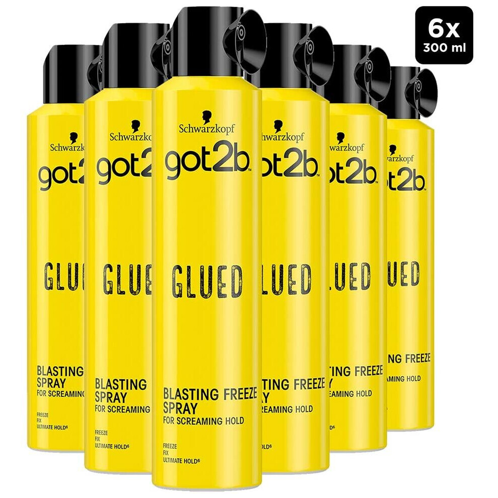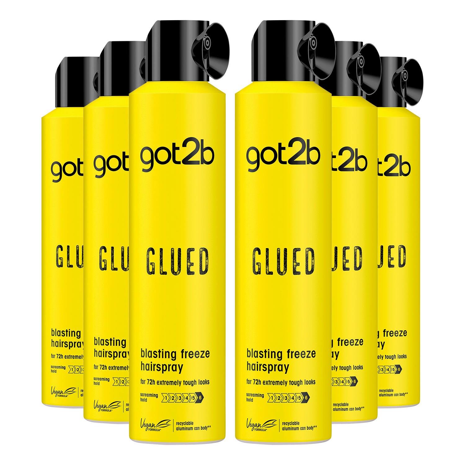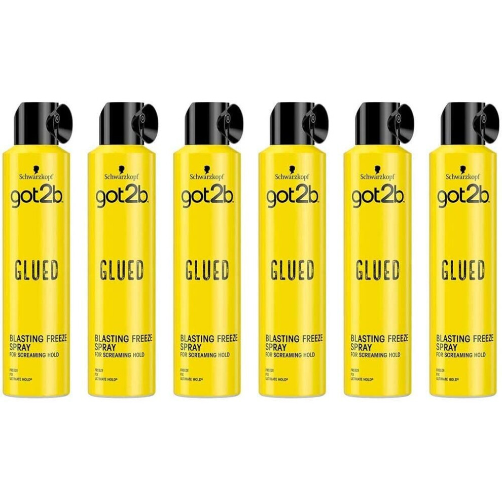 Schwarzkopf got2b Glued Hairspray, Blasting Freeze Spray with Extra Strong Hold, Multipack 6 x 300 ml