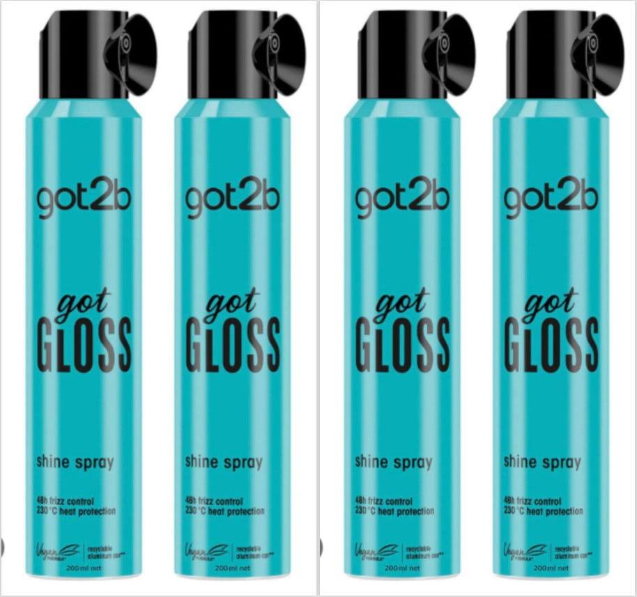 (4x) Schwarzkopf Got2b Got Gloss Shine Spray 200ml Frizz Control Heat Protection