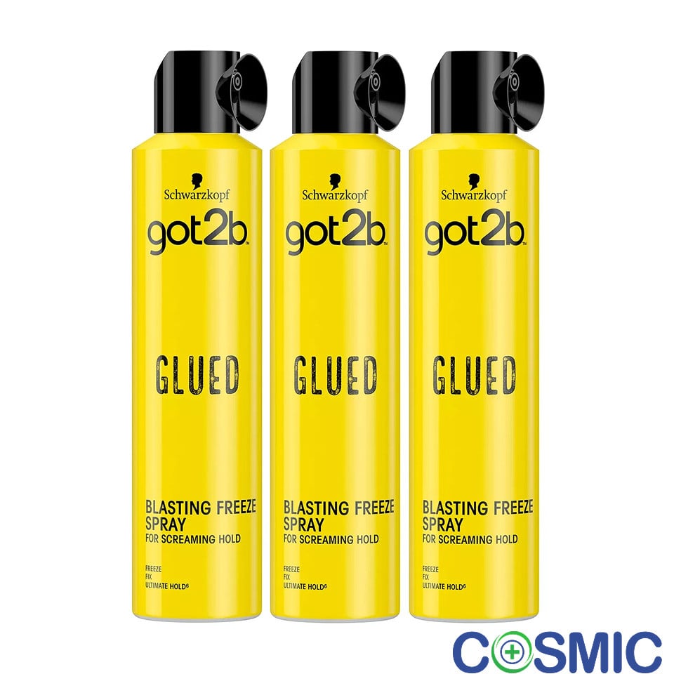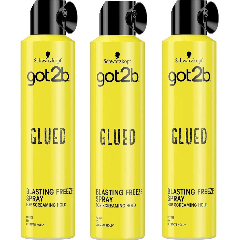 3 X Schwarzkopf Got2B Glued Blasting Freeze Hair Spray for Screaming Hold 300ml
