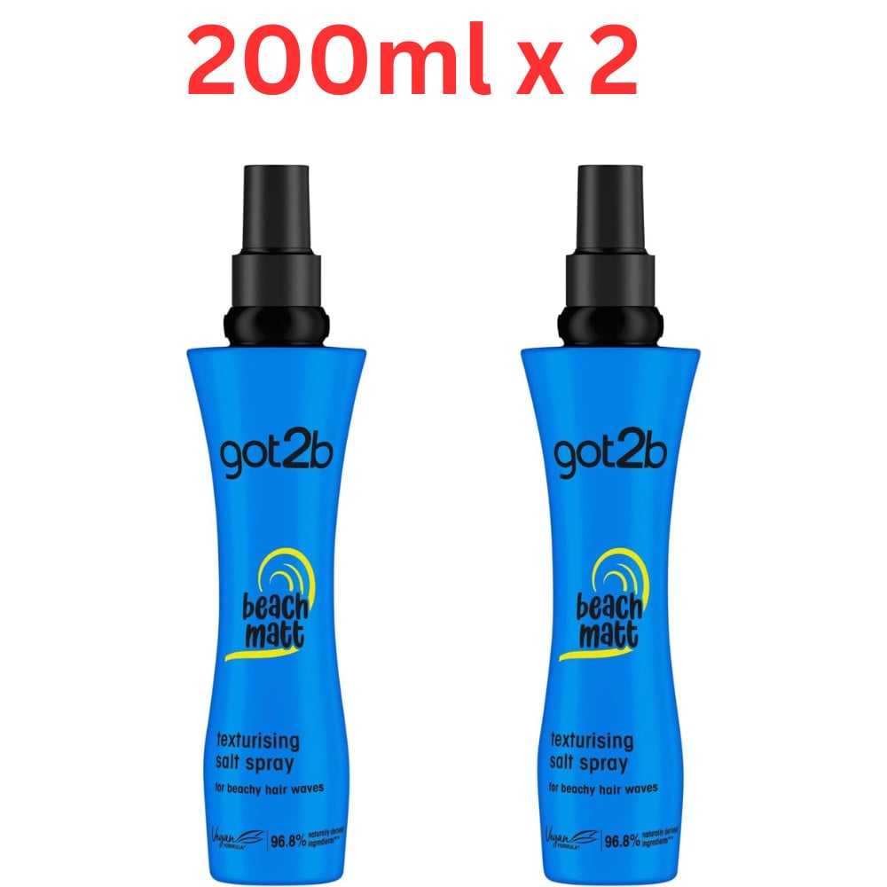 Schwarzkopf got2b Beach Matt Texture Sea Salt Hair Spray, Medium Hold, Creates Waves and Textures with a Matt Finish, packaging may vary, 200 ml (Pack of 2)