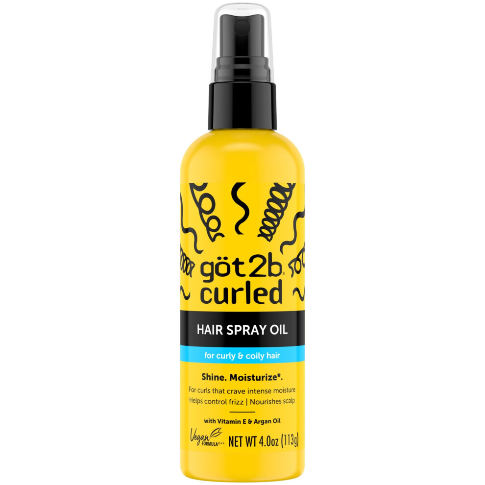 Got2b Curled Hair Spray Oil 4oz for curl types 3-4 curly and coily hair helps control frizz and nourishes the scalp