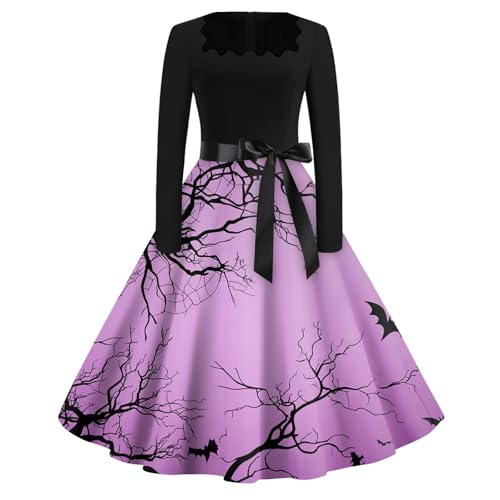 Funny Halloween Costumes Pumpkin Elegant Dress Witch Light Swing Dresses Scary Fashion Halloween Costume Classic Casual Costumes Midi Gothic Corset Outfits(3-Purple,S)