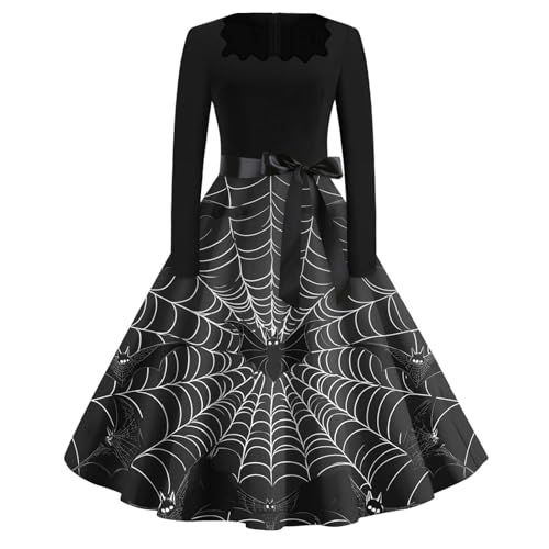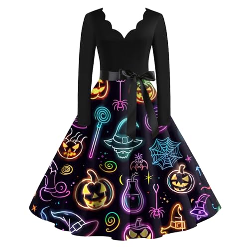 Funny Halloween Costumes Pumpkin Elegant Dress Witch Light Swing Dresses Scary Fashion Halloween Costume Classic Casual Costumes Midi Gothic Corset Outfits(3-Black,L)