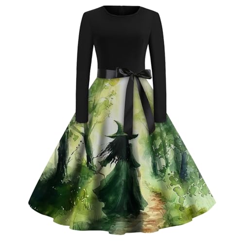 Halloween Costumes Adult Women Pumpkin Elegant Dress Witch Light Swing Dresses Scary Fashion Halloween Costume Classic Casual Costumes Midi Gothic Corset Outfits(3-Green,L)
