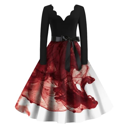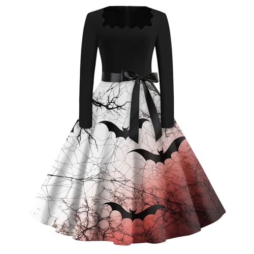 Funny Halloween Costumes Pumpkin Elegant Dress Witch Light Swing Dresses Scary Fashion Halloween Costume Classic Casual Costumes Midi Gothic Corset Outfits(3-Red,L)