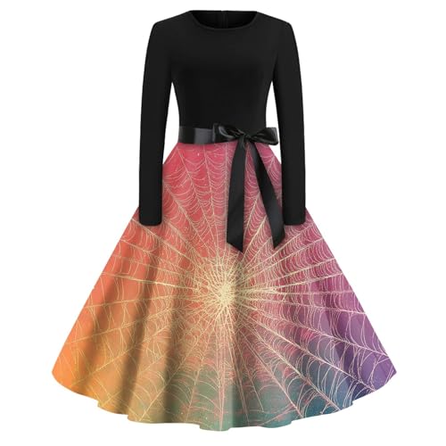 Halloween Costumes Adult Women Pumpkin Elegant Dress Witch Light Swing Dresses Scary Fashion Halloween Costume Classic Casual Costumes Midi Gothic Corset Outfits(3-Hot Pink,L)