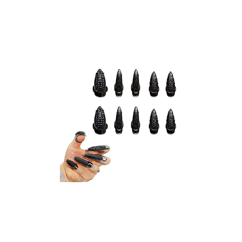 (As show, One size) QQDD 10 PCS Costume Claws Fake Nails Ring Set, Gothic Punk 3 Sizes Crystal Full Finger Rings P