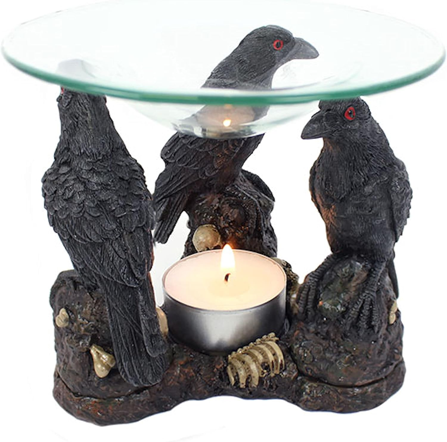 3 Gothic Dark Raven Skull Wax Tart Warmer Oil Burner Tealight Candle Holder