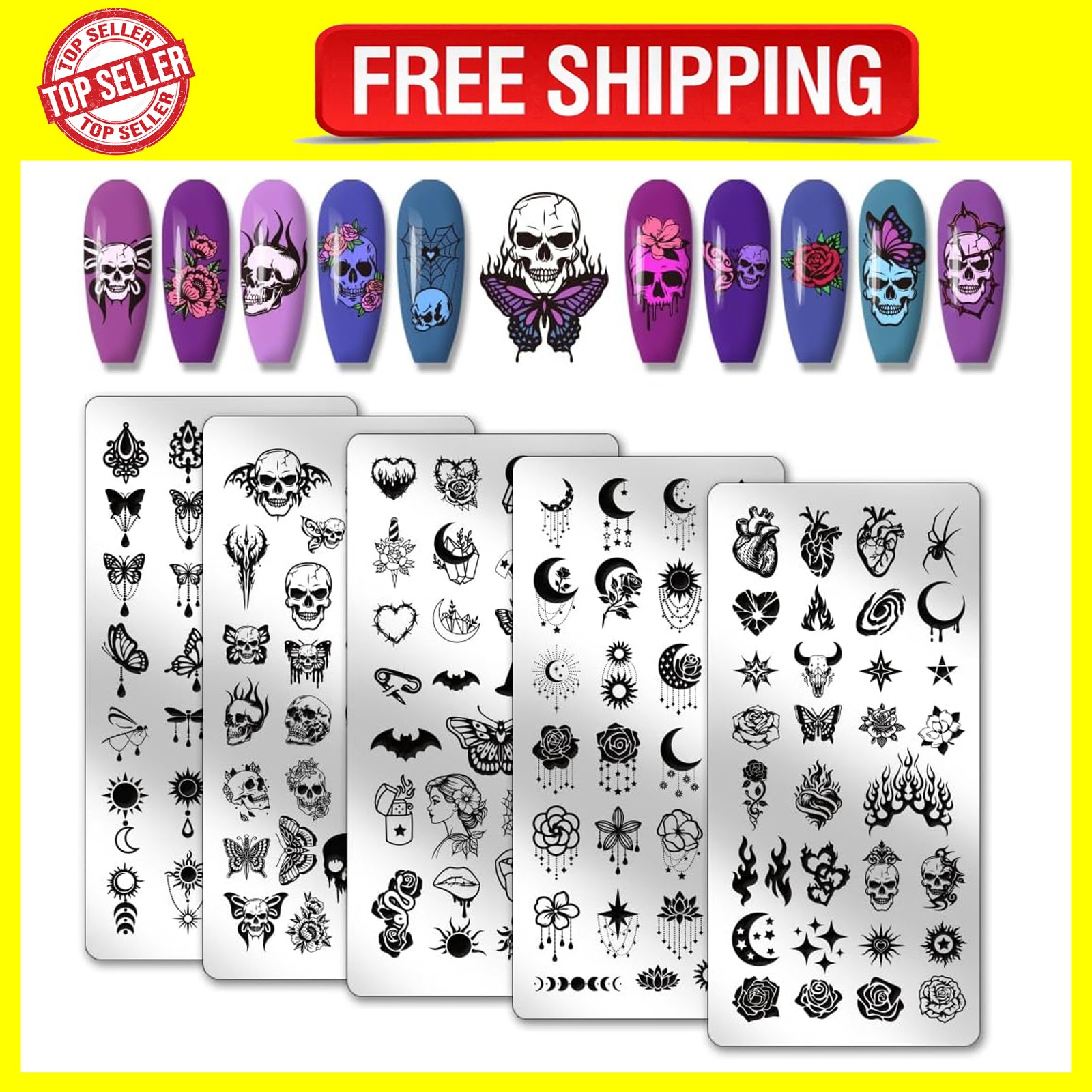 PH PandaHall 5pcs Skull Nail Stamping Plates Gothic Styles Nails Art Stencils M