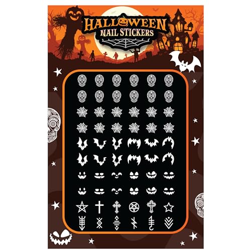 Halloween Bats Sugar Skulls Crosses Gothic Fake Art Finger Nails Stickers for Girls Decal kit Transfer for Kids and Adults