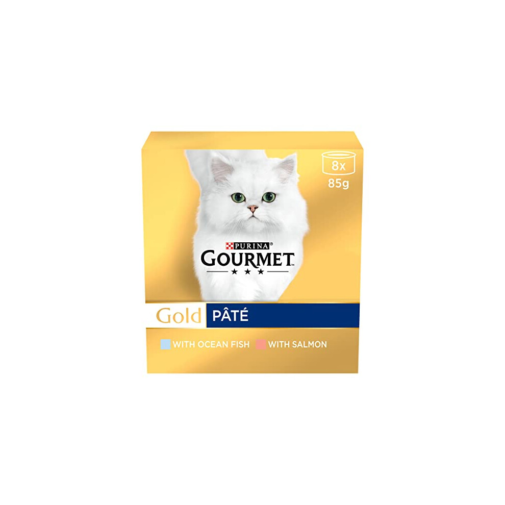 Gourmet Wet Cat Food Gold Pat? 8x85g (Multipack of 6) - Mix of Fish: Ocean Fish and Salmon, suitable for Senior Cats (7 years+) - Tinned Cat Food Wet